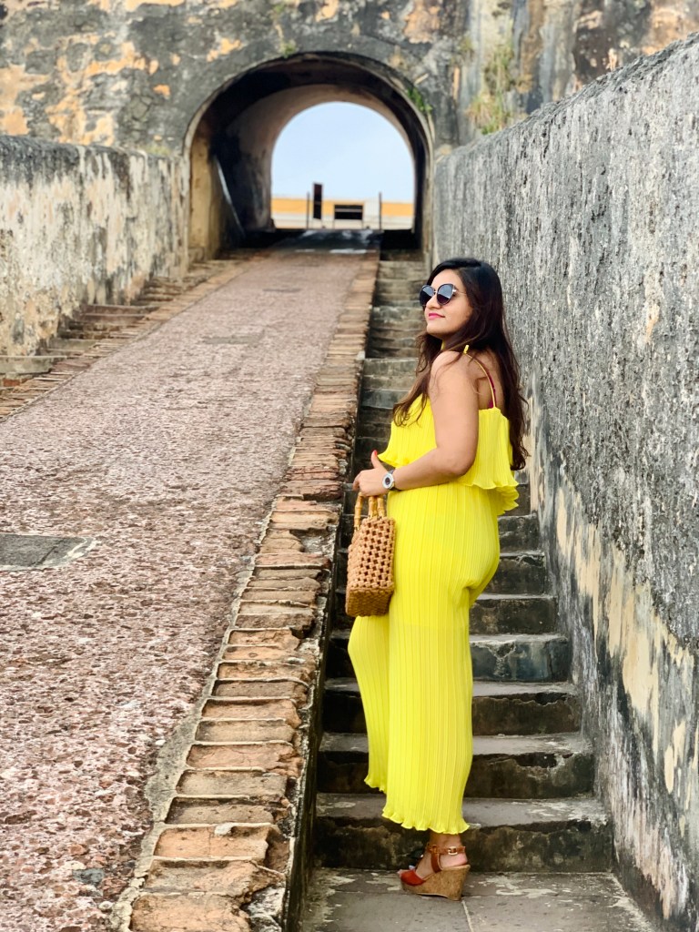 After exploring the castle, being coffee lovers, we had to get our cup of coffee. We stopped by this place called Don Ruiz inside Cuartel de Ballajá. This place reminded me of City Palace in Jaipur, Rajasthan, India. Puerto Rican coffee is one the best coffees I have ever had. Also, Mayuri didn’t miss a chance to get clicked inside this beautiful place 🙂