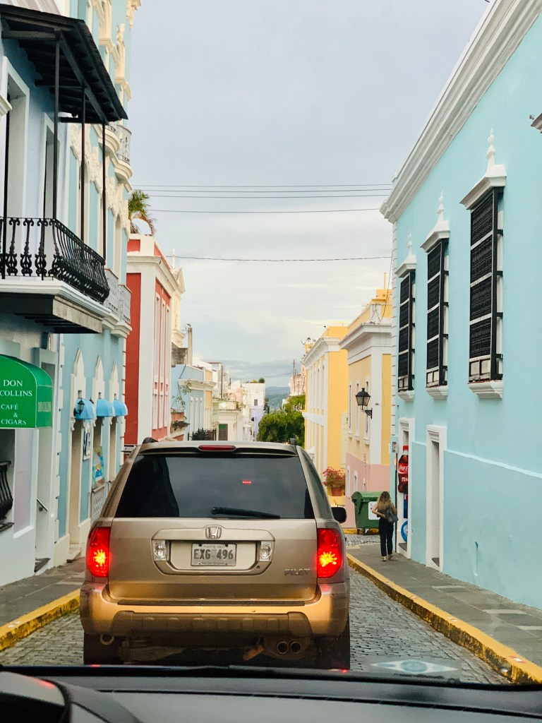 Since we started late and had a huge brunch, we decided to skip lunch and continued exploring San Juan. Since it was a long weekend, we couldn’t find a parking spot in Old San Juan before the sunset so unfortunately couldn’t get any pictures in sunlight but we did manage to explore the colorful streets from our car. Prettiest streets ever!!