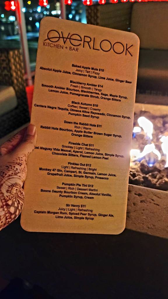 We headed to the onsite restaurant Overlook Kitchen + Bar for some cocktails and decided to have a quite relaxed dinner in our room. The restaurant has some great views and cozy vibe because of the fire pits provided to keep you warm. The cocktails menu changes seasonally and features some amazing hand crafted cocktails. This is a perfect place for a date night or just to hangout with friends and family. Check out their offerings here.