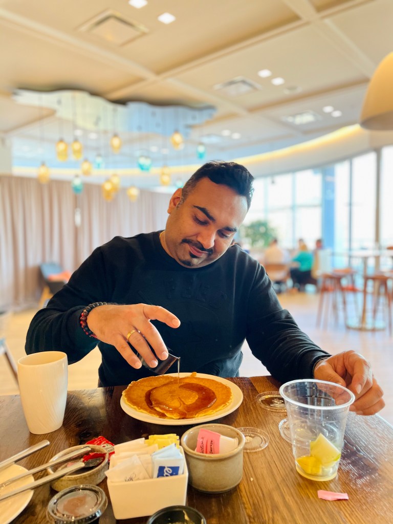 Anil enjoying his pancakes!